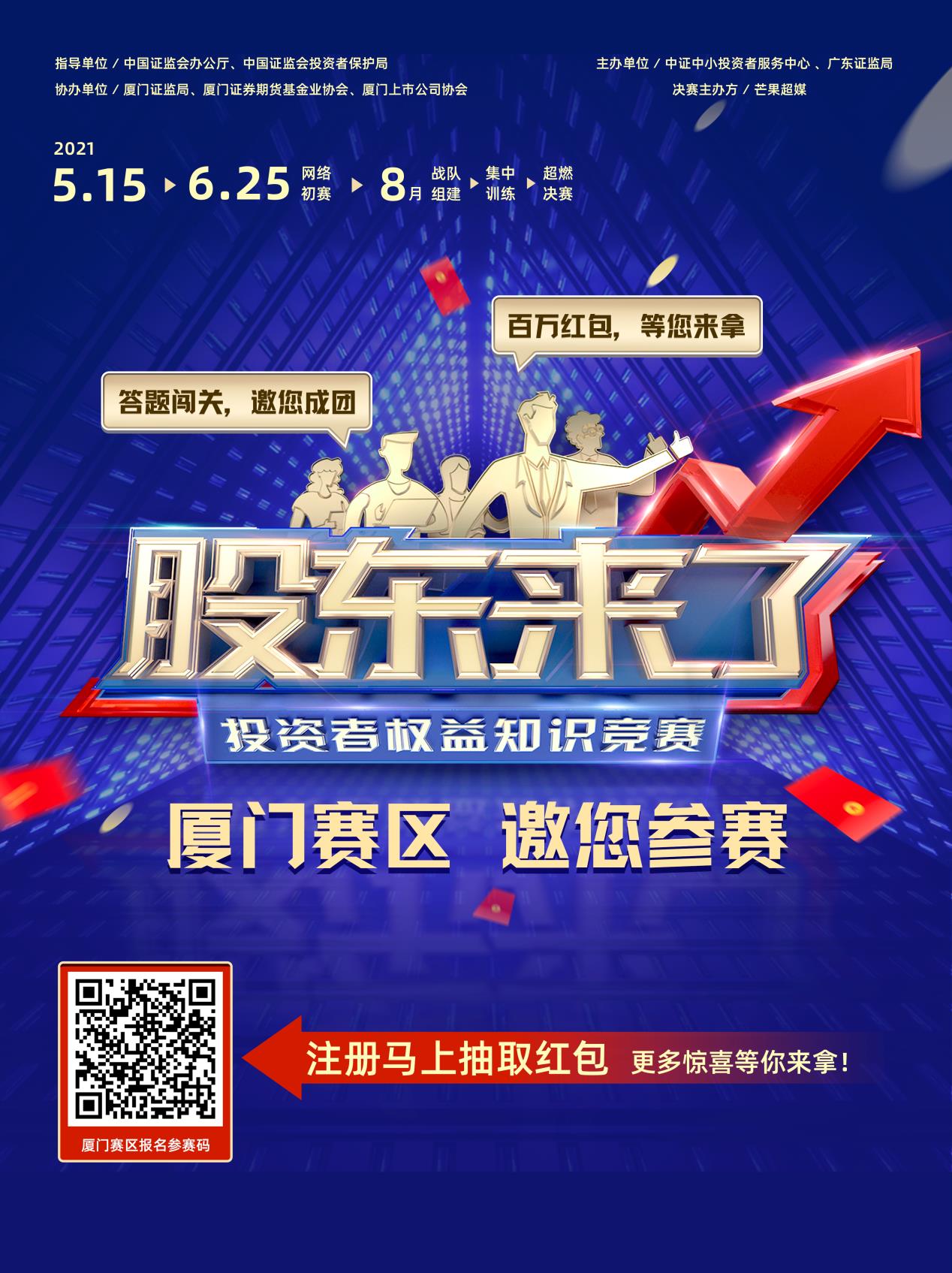 2021年是“十四五”規(guī)劃開局之年,為進(jìn)一步落實(shí)證監(jiān)會(huì)黨委關(guān)于資本市場人民性要求和保護(hù)投資者合法權(quán)益的職責(zé),在會(huì)辦公廳、投保局指導(dǎo)下,投服中心將聯(lián)合廣東、四川、湖北、內(nèi)蒙古、海南、西藏六證監(jiān)局共同舉辦《股東來了》2021投資者權(quán)益知識(shí)競賽,面向廣大中小投資者普及權(quán)益知識(shí),示范引領(lǐng)全面知權(quán)、積極行權(quán)、依法維權(quán)。